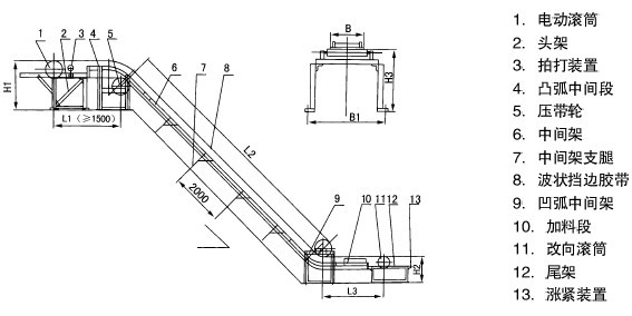 (2)輸送大塊物料時,擋邊應選用偏高的;也可不增大帶寬和擋邊,用提高帶速(1.25m/s、1.6m/s、2m/s)的辦法提高輸送量;